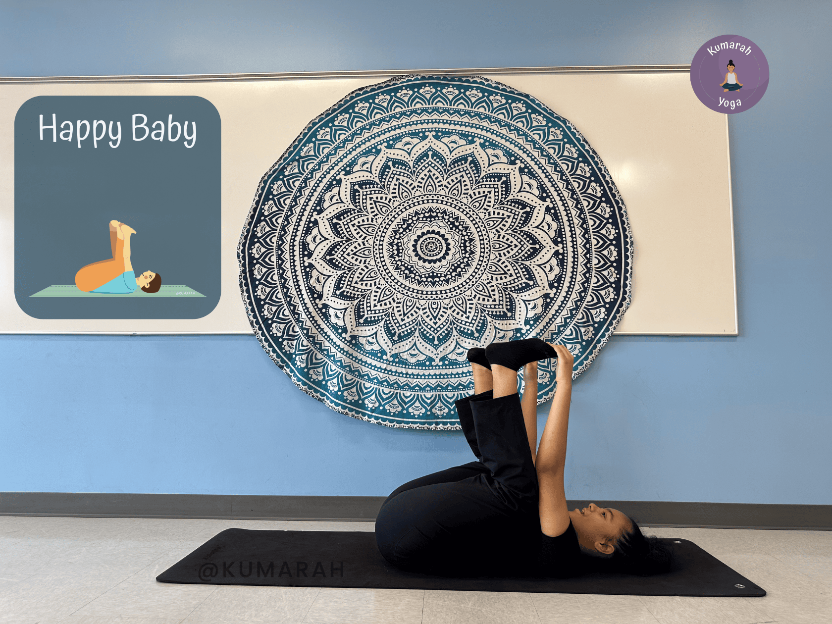 Happy Baby Pose (Ananda Balasana): For this, lie on your back and grab your feet with your hands, knees bent towards your armpits. Now rock from side to side like a happy baby.