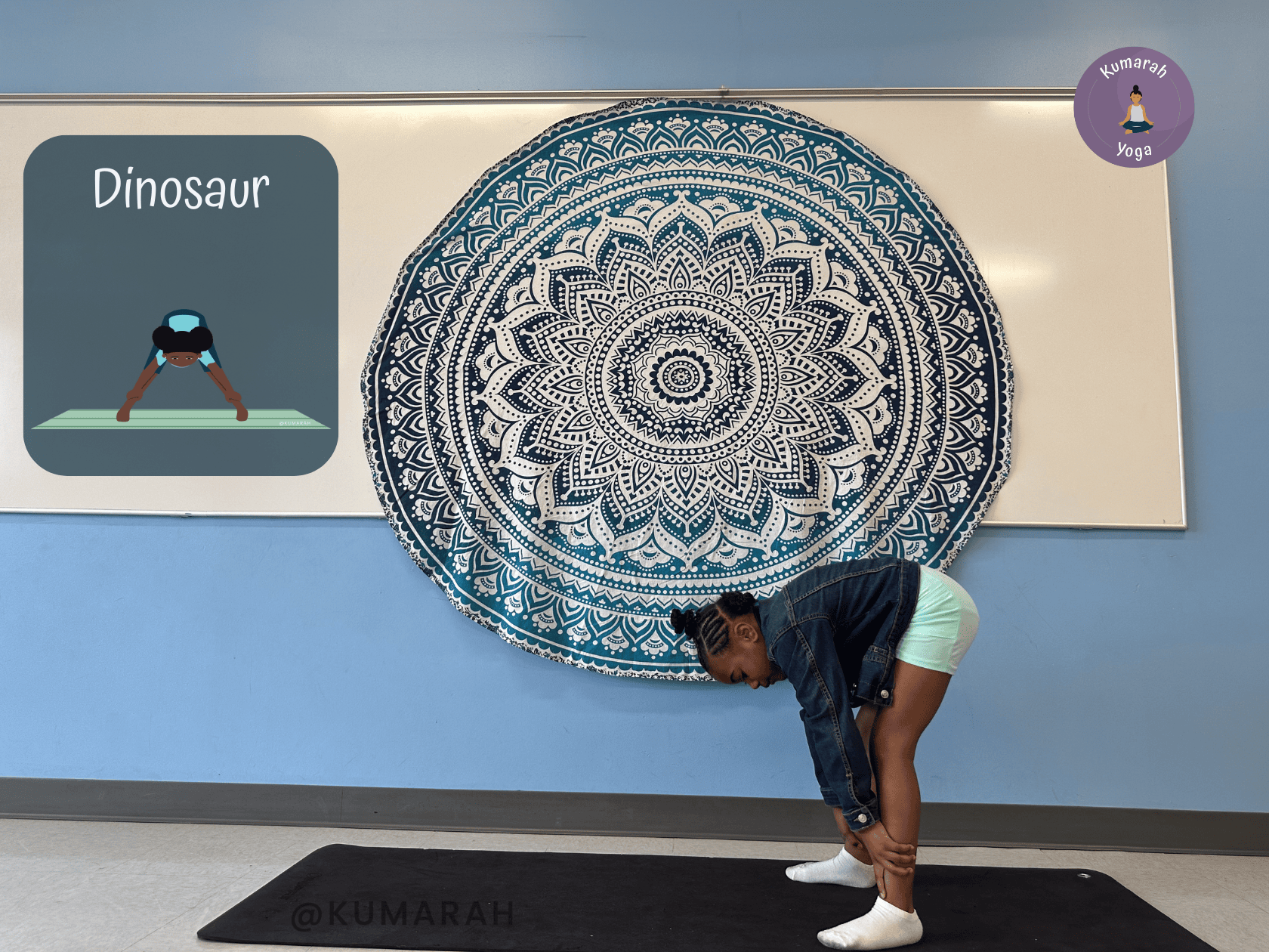 Reach down and grab your ankles for Dinosaur pose.. Then act out the actions to this poem while you’re doing the poem. Keep your hands on your ankles for the first two, and then again for the last two.