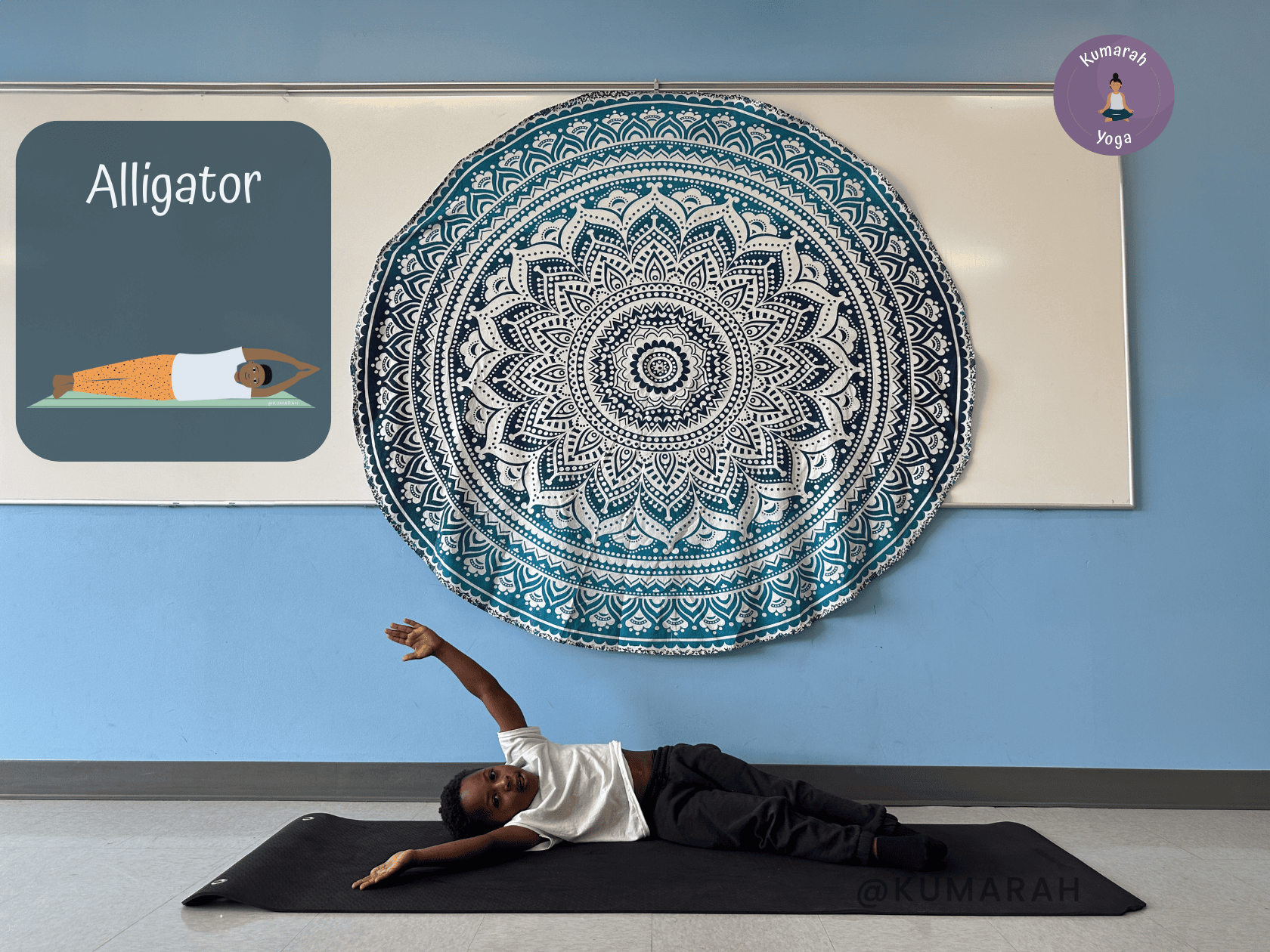 You can also teach younger kiddos some simple mindfulness and relaxation techniques. Guided visualizations or the “lying down like a starfish” exercise can help them unwind and find stillness after an active yoga session.