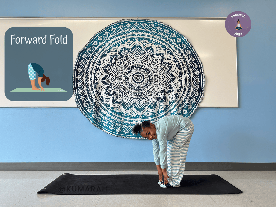 Each child starts on their own yoga mat, standing. You can have them do a yoga pose too, if you like, or just stand in Mountain.