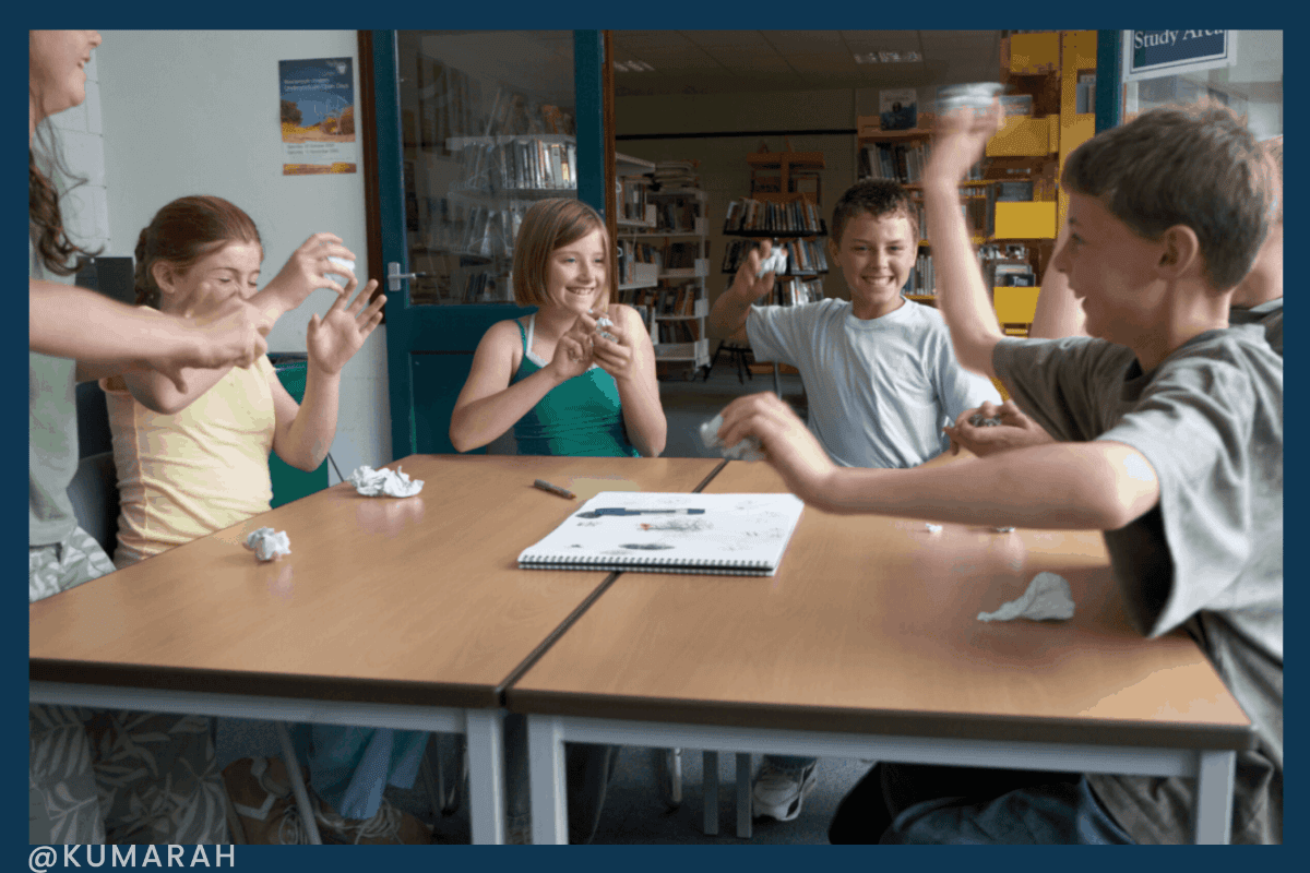 Instruct them to open the paper up one at at time and they can read the sentence aloud to the class. Recommence the snowball fight after everyone has a turn reading a kind sentence.